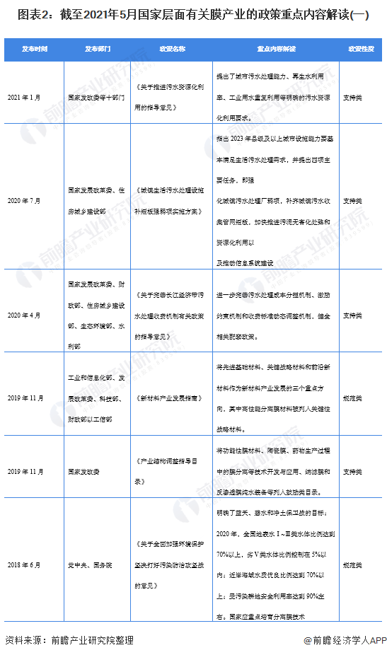 圖表2:截至2021年5月國家層面有關膜產業(yè)的政策重點內容解讀(一)