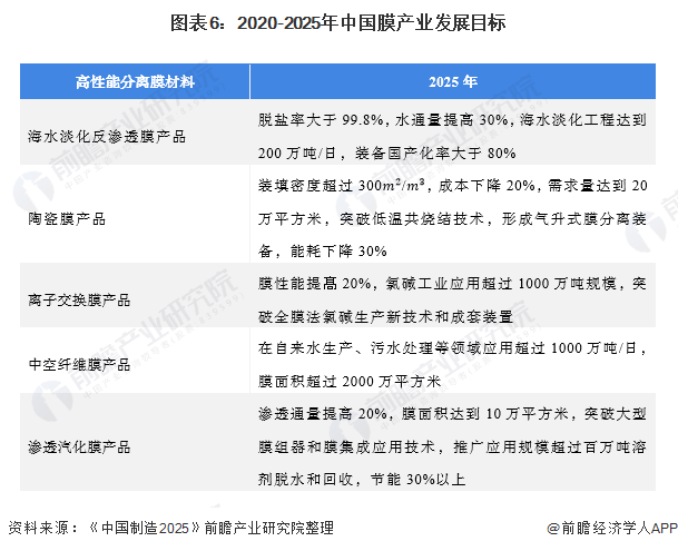 圖表6:2020-2025年中國膜產業(yè)發(fā)展目標