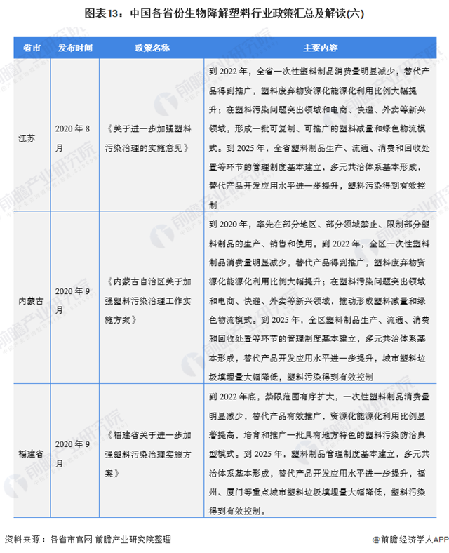 ——31省市生物降解塑料行業(yè)發(fā)展目標(biāo)解讀